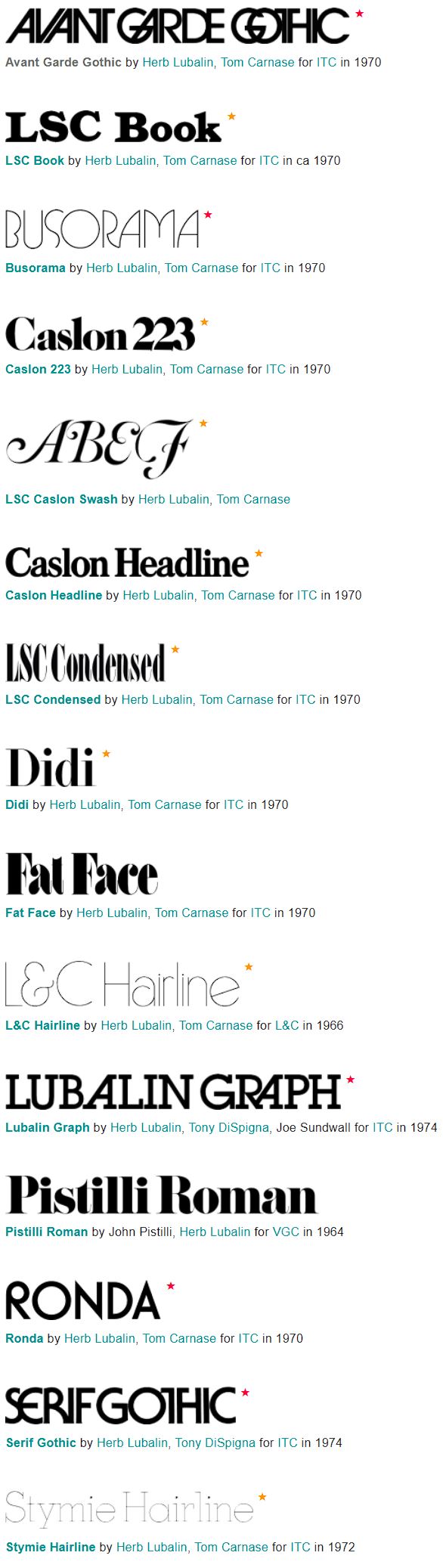 Lubalin’s contributions to the typography industry don’t end with magazines. Of his most popular works, Herb developed several typefaces in his time